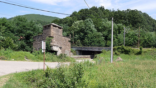 U nastavku vožnje prešao sam preko nekog bezimenog potoka. To je činila i željeznica sa svojim mostom. Pažnju mi je privukao solidni bunker kraj mosta.