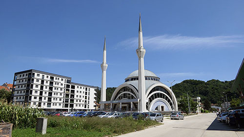 Preko puta navedenog Konzuma je raskošna novosagrađena džamija.