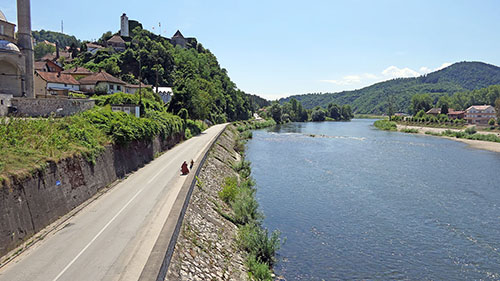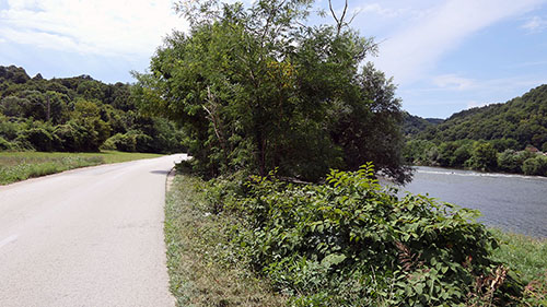 Mogao bih sada ispod mosta, te nastaviti ovom cestom snimljenoj na gornjem snimku, međutim još uvijek sam bez ručka. Pa, nije valjda da ću morati posegnuti za rezervama u bisagama bicikla!?