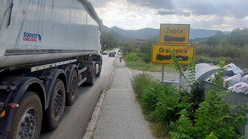 Pred Dobojem – prometni krkljanac. Formirala se kolona od preko 2 km koja vozi toliko sporo da je moj bicikl višestruko puta brži. Nakon par auta koja sam pretekao s (njihove) desne strane zaključio sam da je bolje i sigurnije voziti nogostupom, što sam i učinio.