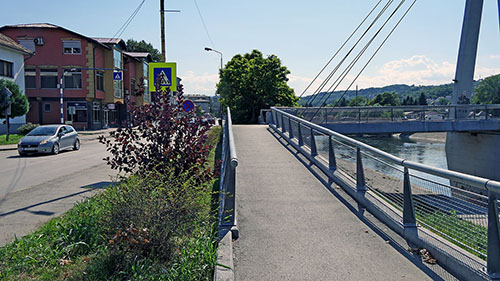 Cesta i željeznica igraju miš-maš, što znači nekad mi je s desne, a nekad s lijeve strane. A to opet implicira da trebam nekako preko nje kada se strane mijenjaju. To je moguće ili u istoj ravnini, dakle rampa i cesta preko pruge ili u različitim nivoima, a to opet znači cesta ide mostom. Tako je i ovaj put bilo kada sam nadvožnjakom prešao preko pruge.