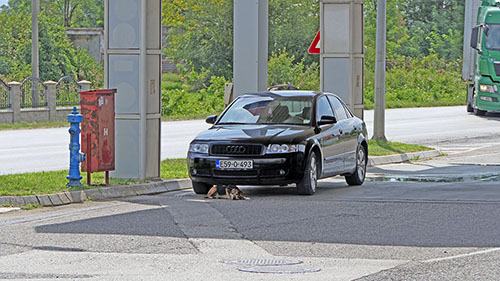 Nakon 2-3 km dalje stao sam na nekoj benzinskoj jer sam ispred nje ugledao stol i stolice, pa sam tu doručkovao. Tokom doručka pažnju mi je privukao „najbolji čovjekov prijatelj“ kako opušteno drema ispod auta.