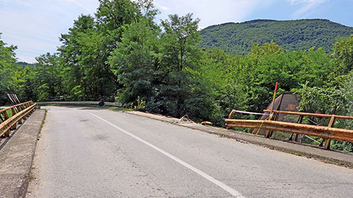 Ostaci porušene ograde na mostu ukazuju da se nekome jako žurilo, pa je umjesto skretanja produžio ravno.