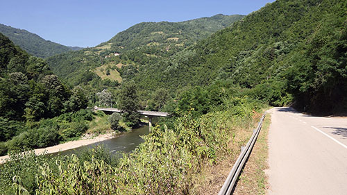 Na izlazu iz grada provlačio sam se lokalnim ulicama dok ih je bilo, no na kraju sam ipak morao na magistralu M17. Razlog tomu je što slijedećih 18-tak km nemam nikakve alternative, pa je ovo jedina cestovna prometnica dolinom rijeke Bosne.