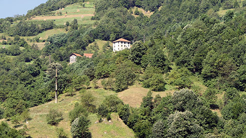 Taj drugi razlog su raštrkana naselja na padini brda koje se vidi iznad ceste, u daljini. Zoomom sam si približio neko od njih.