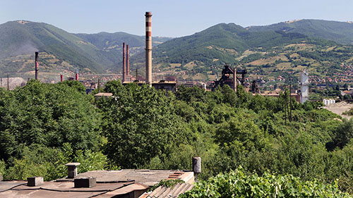 Ručnik kojim sam brisao znoj (ono crveno) i vlažna do mokra majica (ono zeleno) su se u tim pauzama sušili, koliko je to bilo moguće za kratko vrijeme pauze. Na tim „gore“ stajalištima nastojao sam pronaći kakav-takav suvisli pogled kroz zelenilo na grad. Pri tome sam uspio snimiti dimnjake željezare i širu okolicu Zenice.