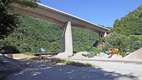 Tu je bilo građevinske mehanizacije, bauštelaca i kojekakve opreme. Očigledno da se dotjerivanje mosta zahuktalo ma maksimalni nivo. Čak se i „moja“ cesta izgubila pretvorivši se u uski prteni sokak. Čak je na njemu bila i signalizacija za naizmjenično propuštanje prometa.