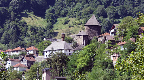 Ono malo kuća o obliku bijelih točkica na brdu na gornjoj slici je mjesto Vranduk.