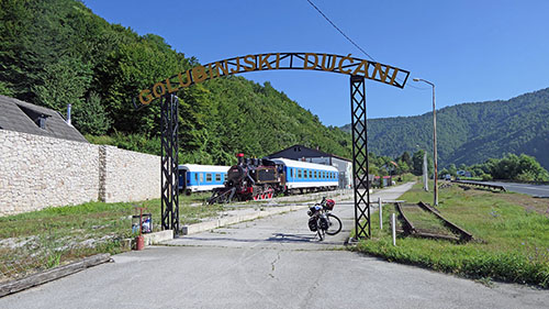 Ne znam koji bi me prizor toliko iznenadio koliko ovaj kad sam pored magistrale ugledao friško dotjeranu lokomotivu sa putničkim vagonom. Da bi došao do njih morao sam proći ispod natpisa „Golubinjski dućani“.