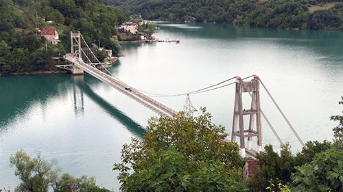 Od kad sam prvi put autom bio vožen ovom cestom, tamo negdje krajem sedamdesetih prošlog milenija, posebna atrakcija bio mi je viseći most preko jezera kod mjesta Ostrožac