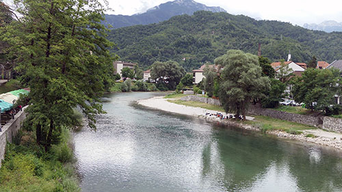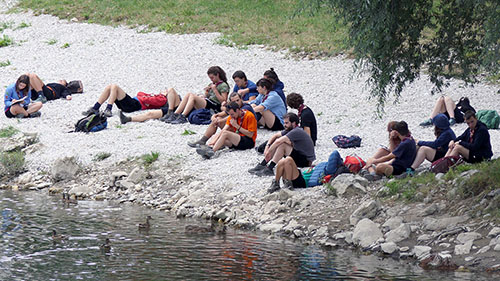 Snimajući gornji snimak u hladovini stabla na drugoj strani Neretve ugledao sam grupu omladine kako odmara na obali.