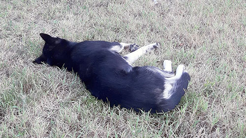Idući tom stazom naišao sam na psa (očigledno lutalicu) koji ide meni u susret. U prvi mah panika, željaza bijegom, a potom smiraj. Sjetio sam se da psi (nekako) osjete naš strah, pa sam glumio ravnodušnost. Očigledno da ju je i on glumio, ili ju je stvarno osjećao, uglavnom prošao je mrtvo-hladno pored mene ovlaš repom dodirnuvši mi nogu.