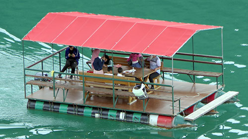 Zanimljiva mi je, recimo tako, vanpansionska potrošnja turističke ponude na jezeru. Ona je bila u obliku improviziranog plovila. Izrađena su tako da su tri dugačka metalna tanka (spremnika) spojeni u cjelinu, na njih je montirana platforma sa nadstrešnicom (da konzumenti, ne daj Bože pokisnu), na jedan kraj platforme montiran je vanbrodski motor (u mom djetinjstvu smo ga zvali Penta prema istoimenom Švedskom proizvođaču), i to je to. Plovilo je spremno za konzumaciju.
