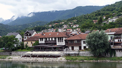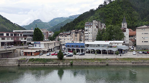 Stara Konjička čaršija, promatrana sa sredine mosta, izgleda ovako