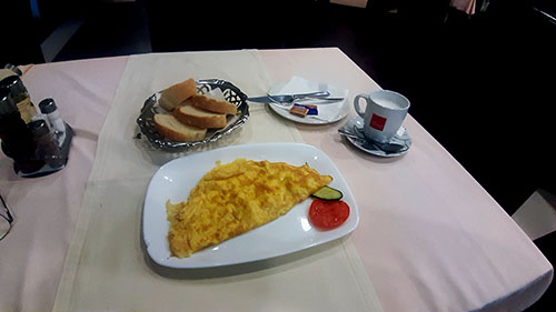 Nakon što smo uspjeli napraviti tu složenu novčanu transakciju (teško da se može smisliti kompliciranija) sjeo sam za stol u restoranu i čekao doručak. Za razliku od ostalih smještaja na ovom putovanju, ovdje sam imao doručak uračunat u cijenu.