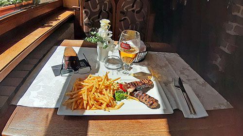 Jedan od razloga zašto volim voziti bicikl (a ima ih milion) je i taj što si tada mogu priuštiti obrok koji je obilan i ukusan, mada bi inače bio pretjeran i nezdrav. Sada sam bio i (fizički) umoran, a i gladan. Uostalom tek sam prešao trećinu današnjeg puta tako da ću ovo što sad pojedem temeljito pretvoriti u energiju, još danas, pa sam naručio nešto hajdučko, zaboravio sam što.