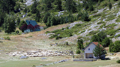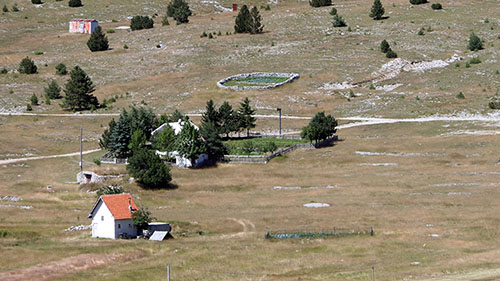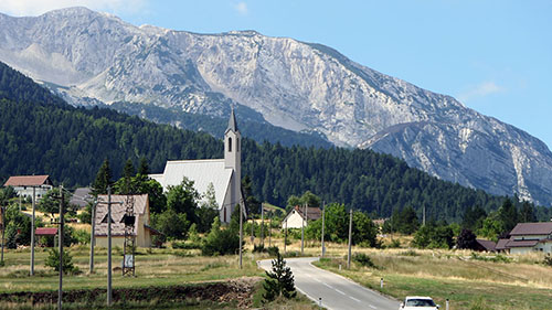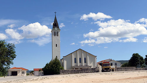 Iako krš planine djeluje surovije, prisutnost uređenog mjesta i prekrasne crkve u konačnici daje ugodan dojam, pa mi gornji snimak više liči na neko mjesto u kultiviranoj Austriji nego negdje iz divljine Hercegovine.