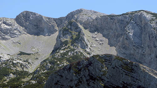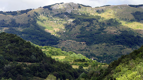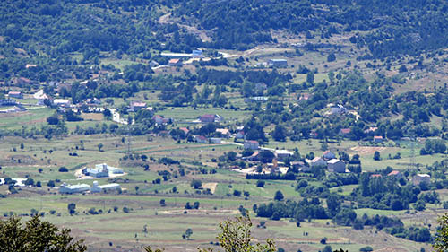 Lijevo na gornjem snimku su razbacane kuće mjesta Sovići a u sredini se vidi dolina Doljanke kojom sam stigao dovde. Zapravo ovaj gornji i donji snimak na neki način gledaju jedan drugoga.
