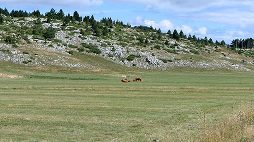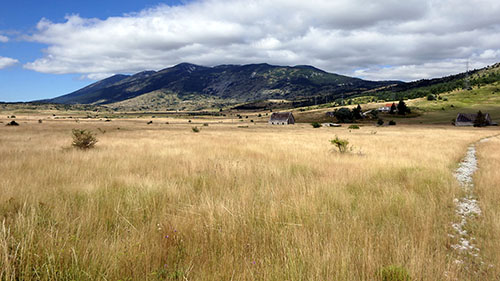 Spustio sam se u polje. S desne strane ne baš pitomi kraj, mada osjećaju njegove surovosti puno pridonosi vjetar. Dakle, polje a i za njega Vran planina.