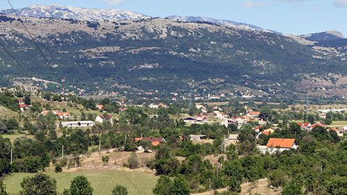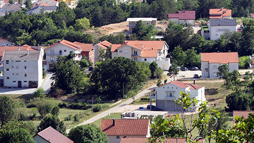 No situacija s lijeve strane ceste je potpuno drugačija. Naselje Risovac s crkvom, a iza svega Čvrsnica.