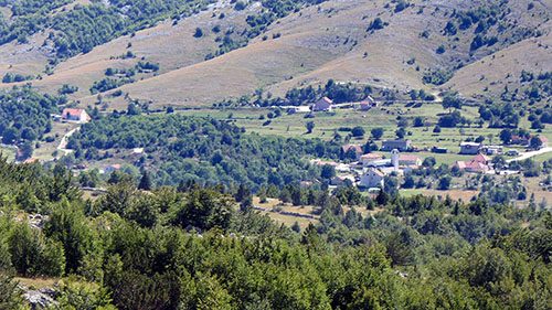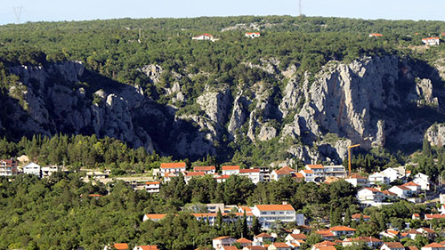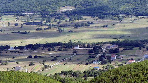 Iza tog najužeg kanjona prostrla se široka dolina u kojoj su razbacane kuće mjesta Doljani.