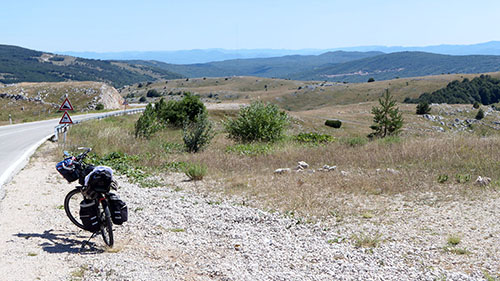 Promatrajući brdo iznad bicikla koje je bilo dosta blizu od ceste, što se visinske razlike tiče, učinilo mi se da je prijevoj blizu. Daljnja vožnja će potvrditi ovu moju pretpostavku.