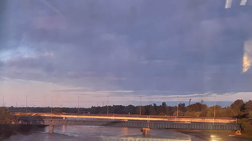 Pri prelasku Save preko Hendrixovog mosta snimio sam usnuli stari Savski most i zoru koja rudi na istoku. Još malo pa ulazimo na Glavni kolodvor u Zagrebu.