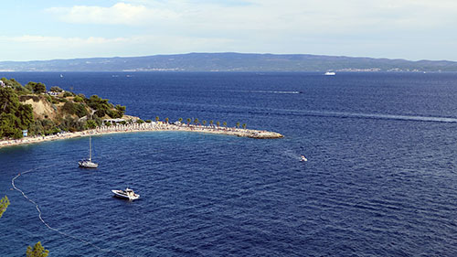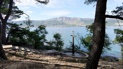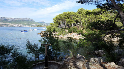 Dalje cesta ide malo gore-dolje, i kod jednog jačeg gore otvorio mi se pogled na kupalište na južnoj strani Marjana na kome se (uglavnom) Splićani kupaju.