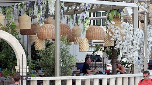 Nešto prije i lijevo od te Galerie Valerie je nekakav kafić s originalnim lusterima na terasi.