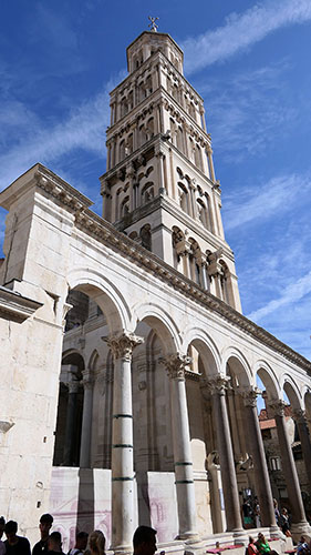 Splitska katedrala posvećena je Uznesenju Blažene Djevice Marije, u narodu je poznata kao Katedrala sv. Dujma (sv. Duje). Katedrala je smještena u kompleksu Dioklecijanove palače u Splitu, na Peristilu i prvotno je bila carski mauzolej, sagrađen početkom 4. stoljeća. Najstarija je katedrala u svijetu. Uoči careve smrti, Milanskim ediktom 313. godine, kršćani su dobili slobodu ispovijedanja vjere pa su u Saloni, upravnom središtu provincije Dalmacije, sagradili bazilike nad grobovima kršćanskih mučenika koje su postale sjedištem hodočašća i kulta svetaca. U 7. stoljeću, Avari i Slaveni su srušili Salonu. Preživjeli stanovnici su pobjegli na otoke, odakle se, nakon određenog vremena, dio njih vratio na kopno i nastanio u napuštenoj carskoj palači. Carski mauzolej su pretvorili u kršćansku crkvu, uklonili poganske idole i sarkofag u kome je car počivao. Iz srušenih bazilika u Saloni, prenijete su kosti svetih mučenika koje je Dioklecijan dao pogubiti: Dujma, prvog biskupa Salone, i Anastazija, radnika, koje su pohranili u carev mauzolej posvećen za metropolitsku crkvu. (izvor: wikipedia)