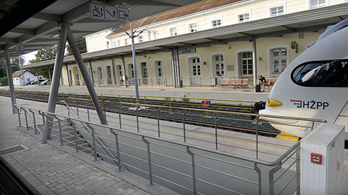 Obnova kolodvora u Sisku je nedavno završena pa djeluje pravo Europski. Uočio sam visinu perona koja je bitno veća nego inače, a koja omogućuju bitno lakše unošenje i iznošenje bicikla.