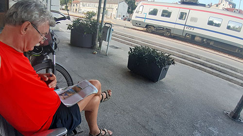 Negdje iza 7 dovezao sam se do željezničkog kolodvora, ispod nadstrešnice od strane tračnica našao klupu, sjeo na nju i vrijeme kratio rješavanjem križaljki.