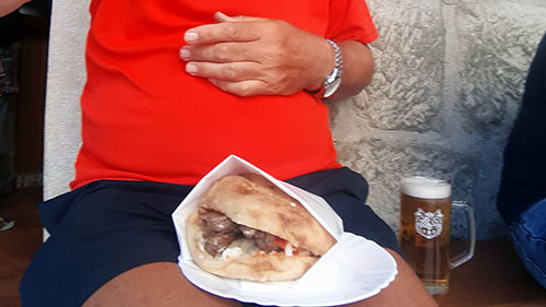 Naručio sam veliku porciju ćevapa sa lukom i ajvarom i pola litre točenog.