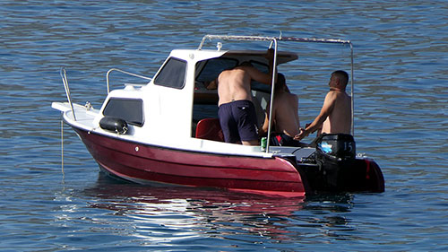 U luku se stalno muvaju neki čamci i brodice. Ovaj, pretpostavljam, dovozi grupu posjetilaca sa broda koji je usidren van luke…