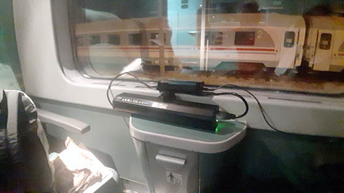 Današnji pređeni kilometri su 107. Obzirom da sutra imam još 30-tak od Nove Gradiške do kuće bilo bi dobro kad bih bateriju malo dopunio. Pored prozora u kupeu uočio sam utičnicu 220 V AC za laptop i slično. Uz samohvalu kako sam se pametno sjetio, spojio sam punjač na bateriju, a zatim sve skupa na utičnicu.