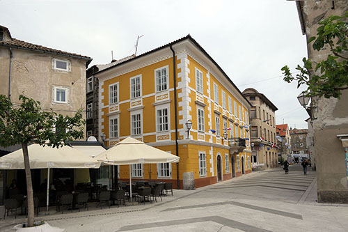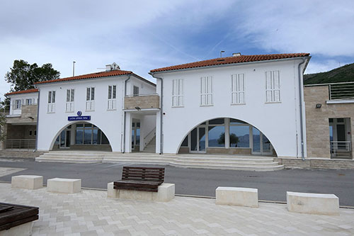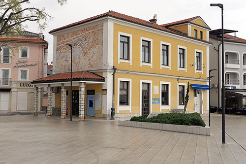 Oko ulaznih vrata, s obje strane nanizane su ploče s imenima institucija koje borave u toj zgradi. Tako je tu smješten Matični ured, pa Općinski sud, i na kraju Lučka uprava. No, meni je, sada dok sam boravio u ovom gradu, pažnju posebno privukla bijela ploča s desne strane na kojoj je pisalo: