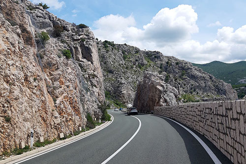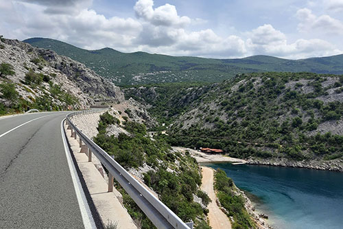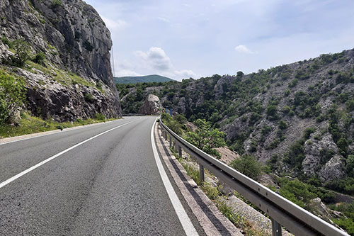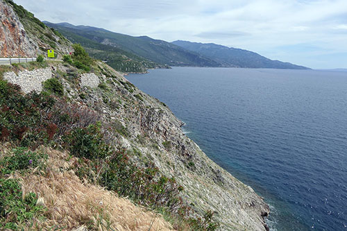 Nakon ovih uvala magistrala je išla unutrašnjošću, kopnom, pa jedno vrijeme mora nismo vidjeli. A i to što je išla kopnom, išla je uzbrdo, ne nekim velikim postotkom, ali ipak uzbrdo.