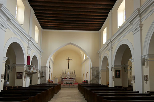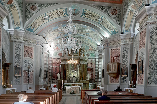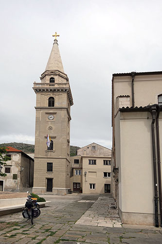Na gornjoj slici, s lijeve strane se vidi komadić tornja, koji je, tipično za krajeve uz more, odvojen od same crkve.