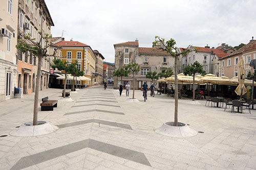Slično kao u Crikvenici i ovdje je centar mjesta u obliku velikog i širokog platoa.