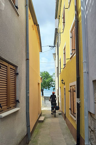 Sada slijedi uživancija bicikliranja uskim Senjskim ulicama. Dozvolio sam si tren, samo mali tren razmišljanja u stilu „Bože moj, što bi propustili da smo produžili magistralom!?“ Samo tren, velim, jer mi je bilo besmisleno razmišljati bilo što, a kamo li neku jadikovku, kad se treba u potpunosti prepusti užitku okretanja pedala kroz ovaj uski labirint.