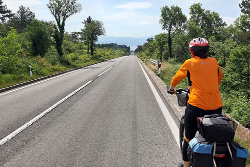 Nakon „Kartu čitaj, a seljaka pitaj!“, jer smo prvog prolaznika pitali kako do magistrale, krenuli smo uzbrdicom uskom i krivudavom ulicom. Nakon par stotina metara izašli smo na magistralu, koja je, nakon one uske i krivudave ulice, izgledala raskošno široka. Uzbrdica se nastavila i na magistrali, no ona je bila sitnog postotka tako da su je naši bicikli, uz pomoć struje, bez problema savladavali. Tek kad smo se našli na nekakvom prijevoju sa kojeg sam vidio da je more „tamo dolje“, postao sam svjestan koliko smo uzbrdicu savladali, a da to nisam ni primijetio.