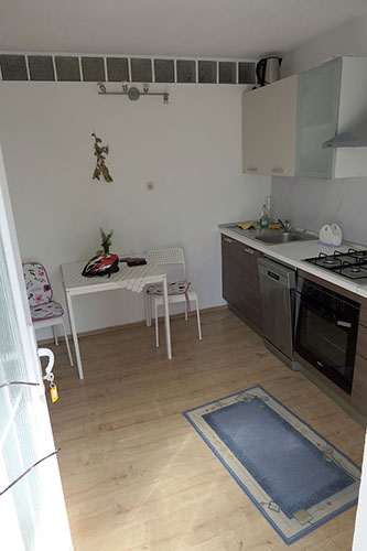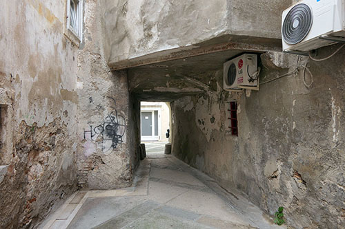 Stiješnjena između zidova susjednih kuća izgledala mi je da jedva diše. Visina joj je bila bitno veća nego širina. Kao da je nekada bila široka prizemnica, no polako, ali uporno je prisutan proces prešanja zidova bočnih građevina, pa mi je izgledalo kao da će u slijedećih 10-20 godina kuća narasti još dva-tri kata, no tada će po katu biti samo jedan prozor.