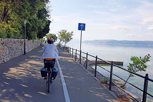 Kao što smo jučer sišli ranije s magistrale u Dramalj, te do Crikvenice nekih 3-4 km vozililokalnom cestom uz more, tako ćemo i jutros otprilike jednaku udaljenost voziti do Selca, a tek potom izaći namagistralu.