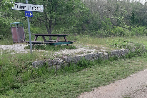 Od stajališta Triban malo je što ostalo, tek kameni podzid. Ipak, sada kada umjesto željeznice ovuda prolaze biciklisti ili pješaci za njih je postavljena klupa sa stolom, da lakše predahnu oni koji vrte pedale ili oni drugi koji hodaju.