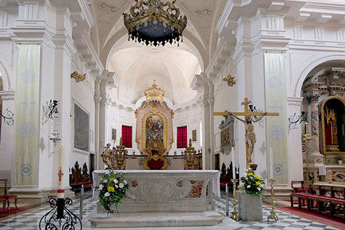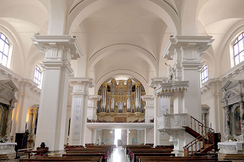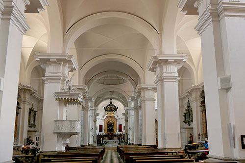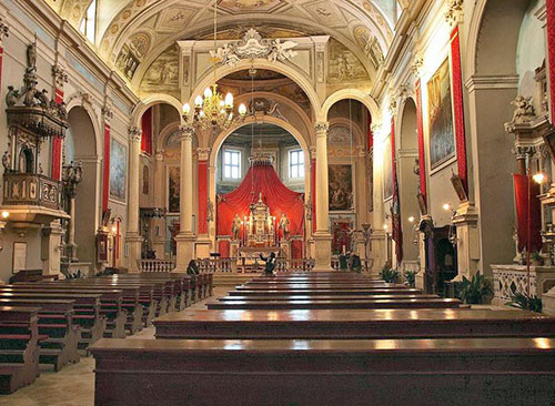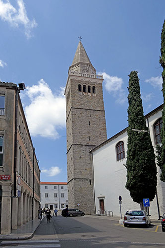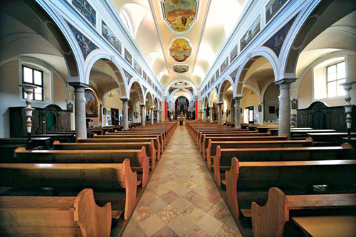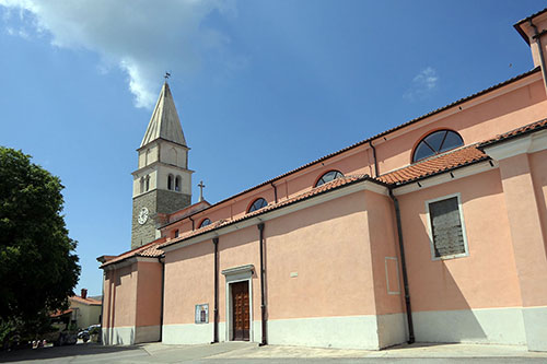 Staza Parenzane, jasno, ne penje se po brdima, pa tako je i u Bujama. Stoga ni mi se, prateći stazu, nismo išli „gore“ do stare jezgre. Za trenutak mi je bilo žao jer zasigurno bi bilo zanimljivo vidjeti staru jezgru kao i unutrašnjost crkve. Što se ovog drugog tiče ipak evo prikaza unutrašnjosti crkve koje sam posudio sa web stranice nikoo.eu.