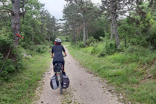 Prvo staza Parenzane odakle smo došli zajedno s njom i njenim biciklom.