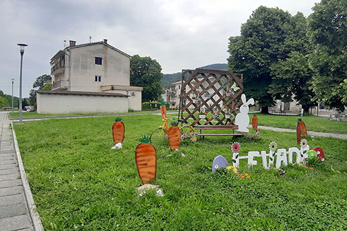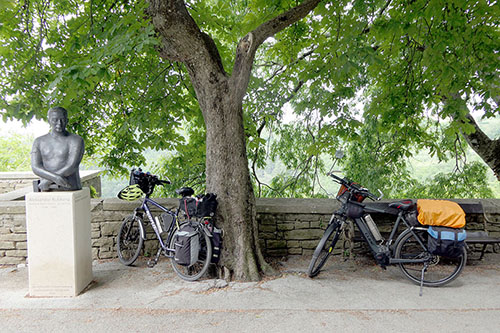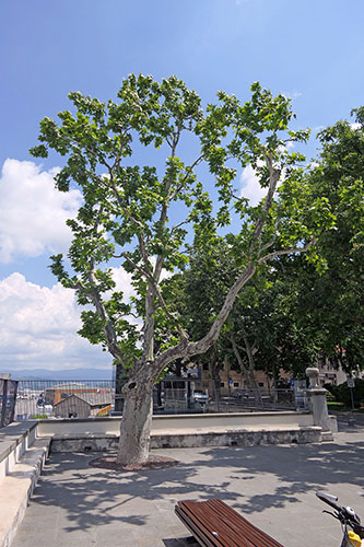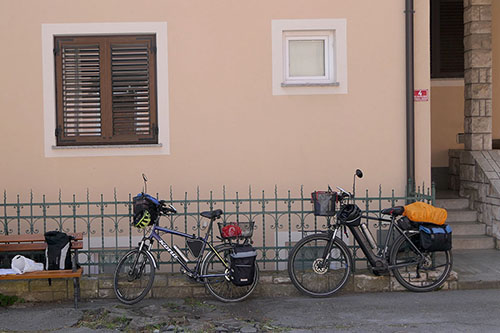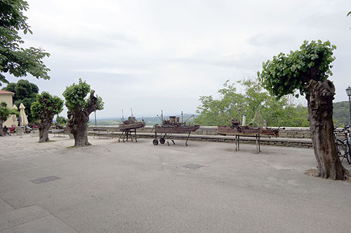 Tik ispred navedenog trga je hladovina sa klupom gdje smo parkirali bicikle, a zatim na smjenu krenuli u obilazak mjesta.