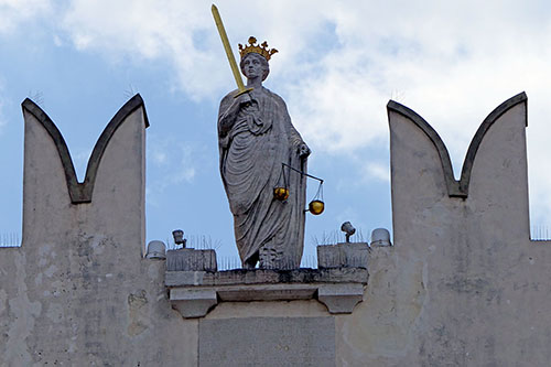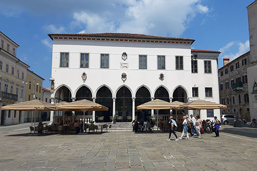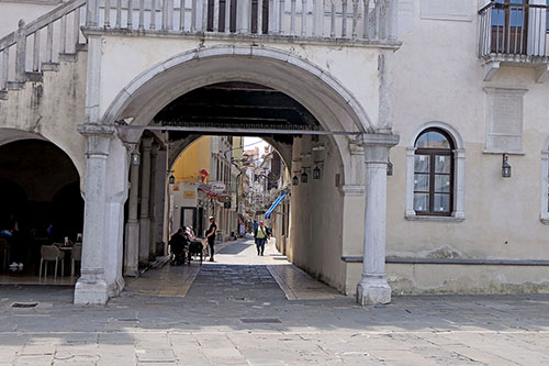 Kao tipična srednjovjekovna arhitektura izdvaja se gradska lođa četirima svojim lukovima u renesansnom stilu. Iznad nje je izgrađen gradski fontik za žitarice u kojem danas djeluje Gradska umjetnička galerija. Cijela zgrada izdvaja se svojom gracioznošću. Tik do velikih ulaznih vrata nalazi se gradski toranj ukrašenim grbovima raznih grožnjanskih uglednika i rektora iz venecijanskog razdoblja.(izvor: groznjan-grisignana.hr)