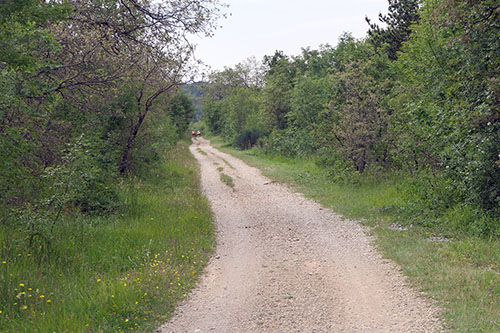 Priznajem da mi je staza bila polu-zapuštena. Srećom često su se pojavljivali ostali biciklisti (dvije udaljene crvene točkice) čija me je pojava smirivala i uvjeravala da sam ipak na pravom putu.