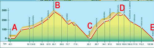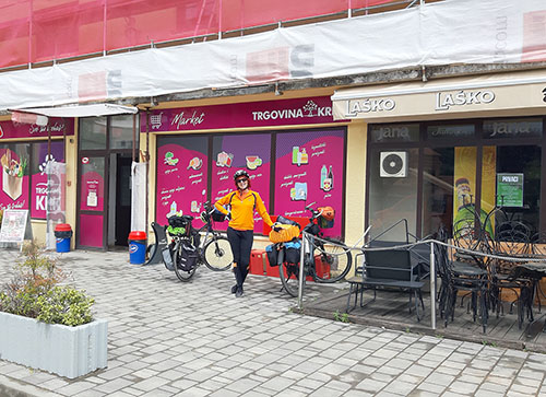 Što se tiče opskrbe, nju smo učinili u ogromnim Plodinama. Nedaleko od njih, na rubu parkirališta našli smo kakvo-takvo mjesto na kojemu smo doručkovali. Objed smo obavili u ne pretjerano ugodnoj atmosferi, jer je bilo tmurno i oblačno. Kao da ni to nije bilo dovoljno pojavio se i podmukli, prohladni povjetarac. Uglavnom, vremenske prilike gore nego jučer kada nas je većinom i sunce pratilo. Njega danas, a i sutra uglavnom nećemo vidjeti.